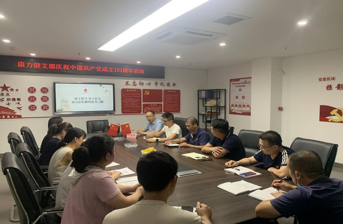 為慶祝中國共產(chǎn)黨建黨 101 周年, 7 月 1 日, 康力健黨支部開展 “七一” 主題黨日活動, 通過唱紅歌、 重溫入黨誓詞、 支部書記講黨 課等多種形式, 教育引導(dǎo)黨員干部不忘初心, 知行合一, 以實際行動 迎接黨的二十大勝利召開。