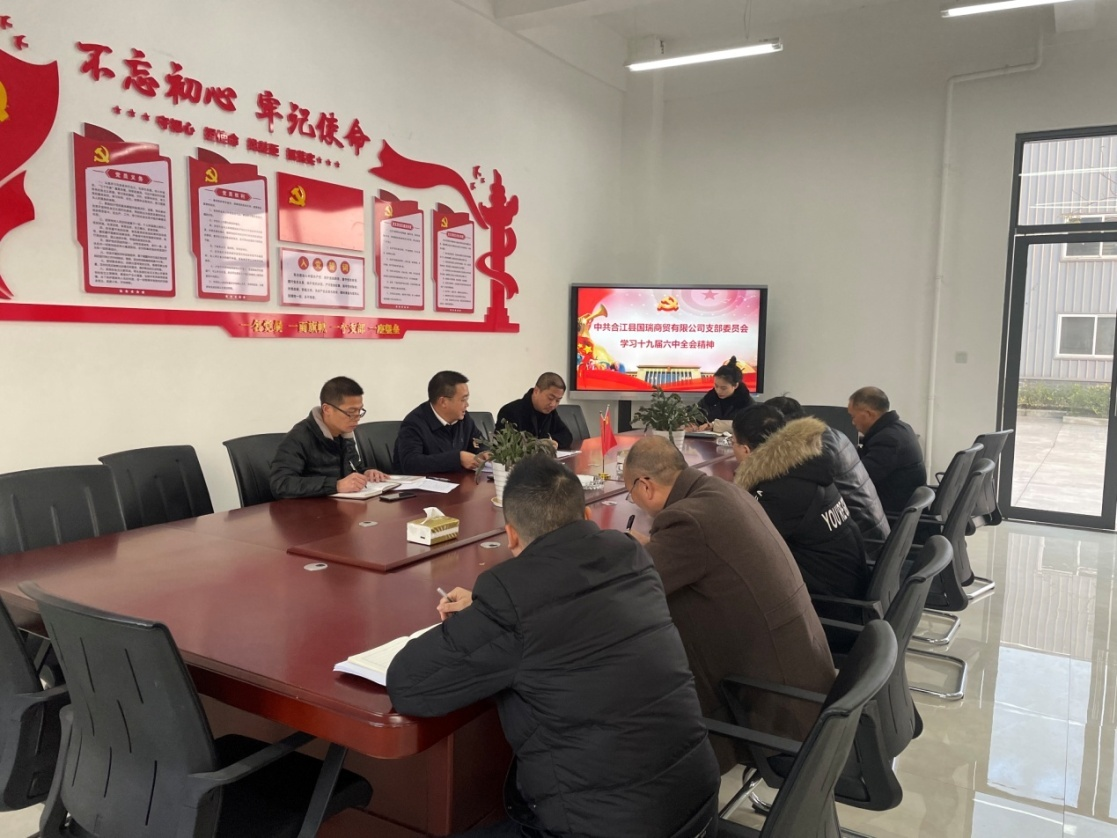 2021年12月21日,國瑞商貿(mào)黨支部召開黨員大會(huì)深入學(xué)習(xí)貫徹黨的十九屆六中全會(huì)精神,會(huì)議由黨支部書記陳目科主持,全體黨員、入黨積極分子參加會(huì)議。