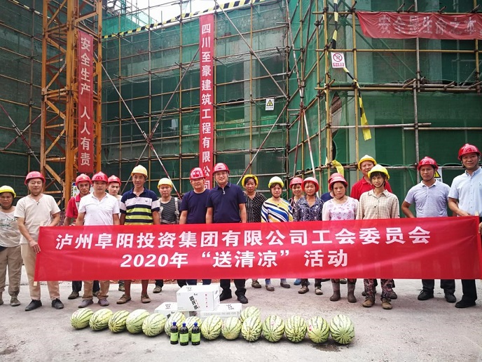 近日,合江持續(xù)高溫,為保障一線人員的身體健康,確保各項生產(chǎn)工作安全有序開展,8月11日,集團公司黨委委員、工會主席袁健,帶領(lǐng)集團黨群紀檢工作部、綜合部先后深入鑫晟學(xué)府、殯儀中心、龍掛山景區(qū)等十多個項目建設(shè)現(xiàn)場,看望慰問奮戰(zhàn)在一線的工作者,為他們送去清涼物資和關(guān)心關(guān)愛。
