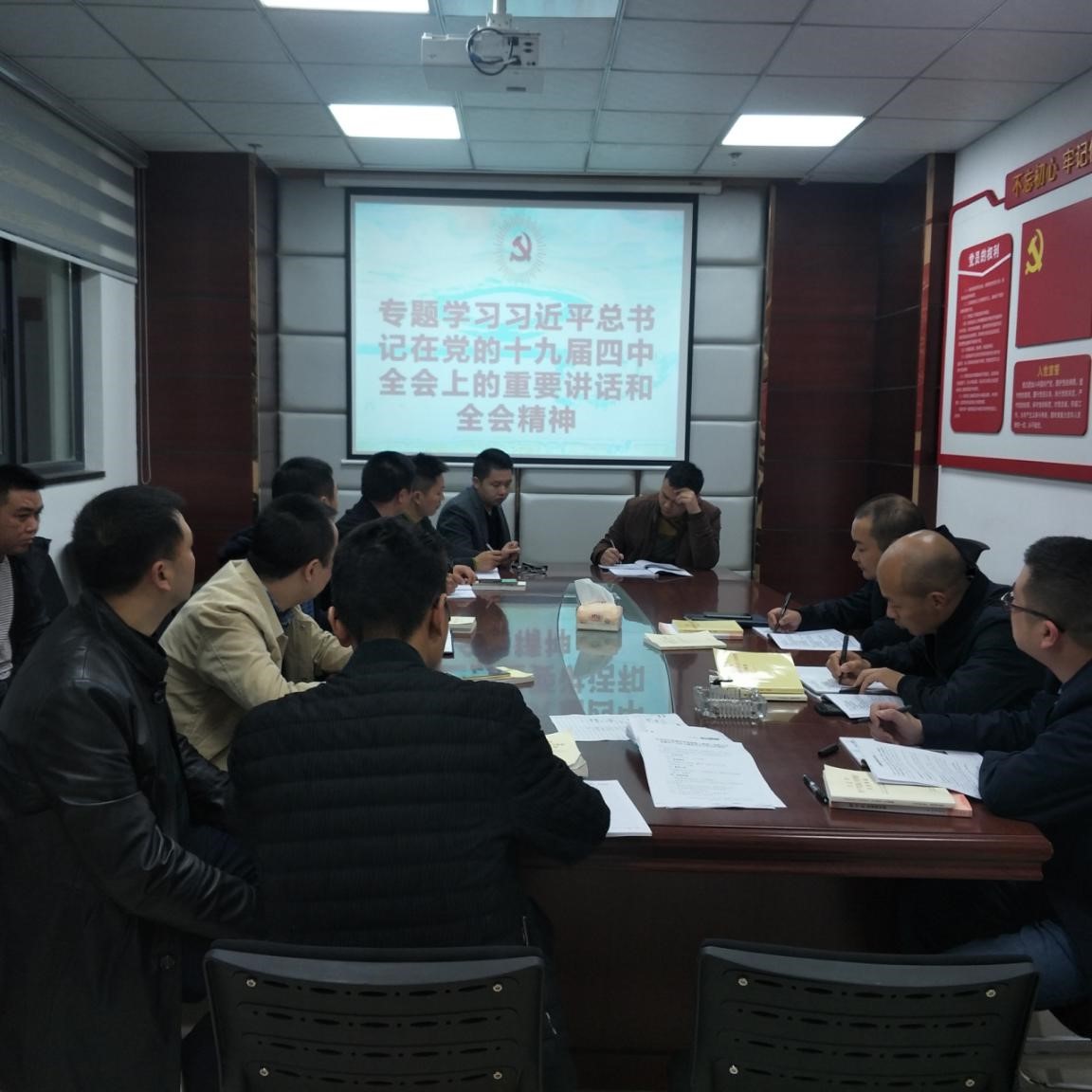 2019年11月8日,中共合江縣城市開發(fā)投資(集團(tuán))有限公司支部組織黨員、入黨積極分子持續(xù)開展主題教育學(xué)習(xí),專題學(xué)習(xí)了習(xí)近平總書記在黨的十九屆四中全會上的重要講話和全會精神。