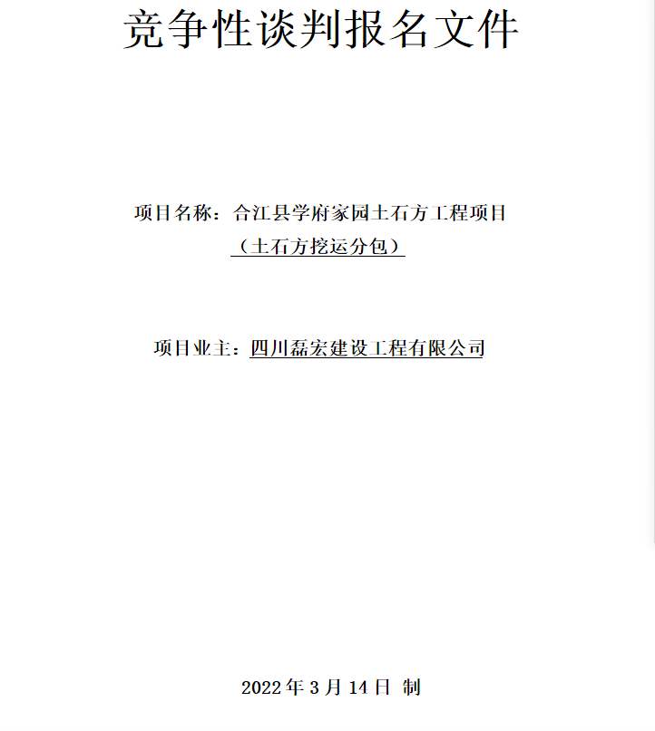 項目名稱:合江縣學府家園土石方工程項目(土石方挖運分包)
