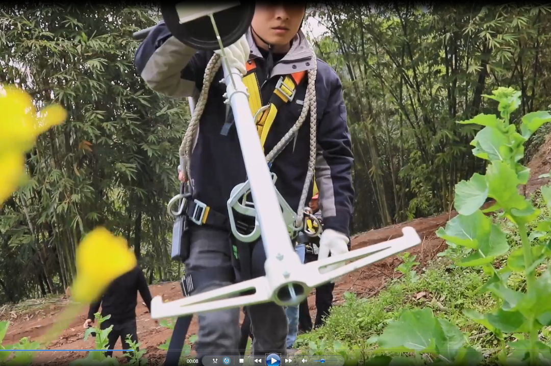 副 救 援 人 員 帶 繩 攀 登 支 架 , 到 達(dá) 支 架 頂 部 后 , 地 面 人 員 拉 緊 安 全 繩 將 救 護(hù) T 型 架 拉 至 支 架 上 端 , 由 副 救 人 員 掛 在 運(yùn) 載 索 上 。