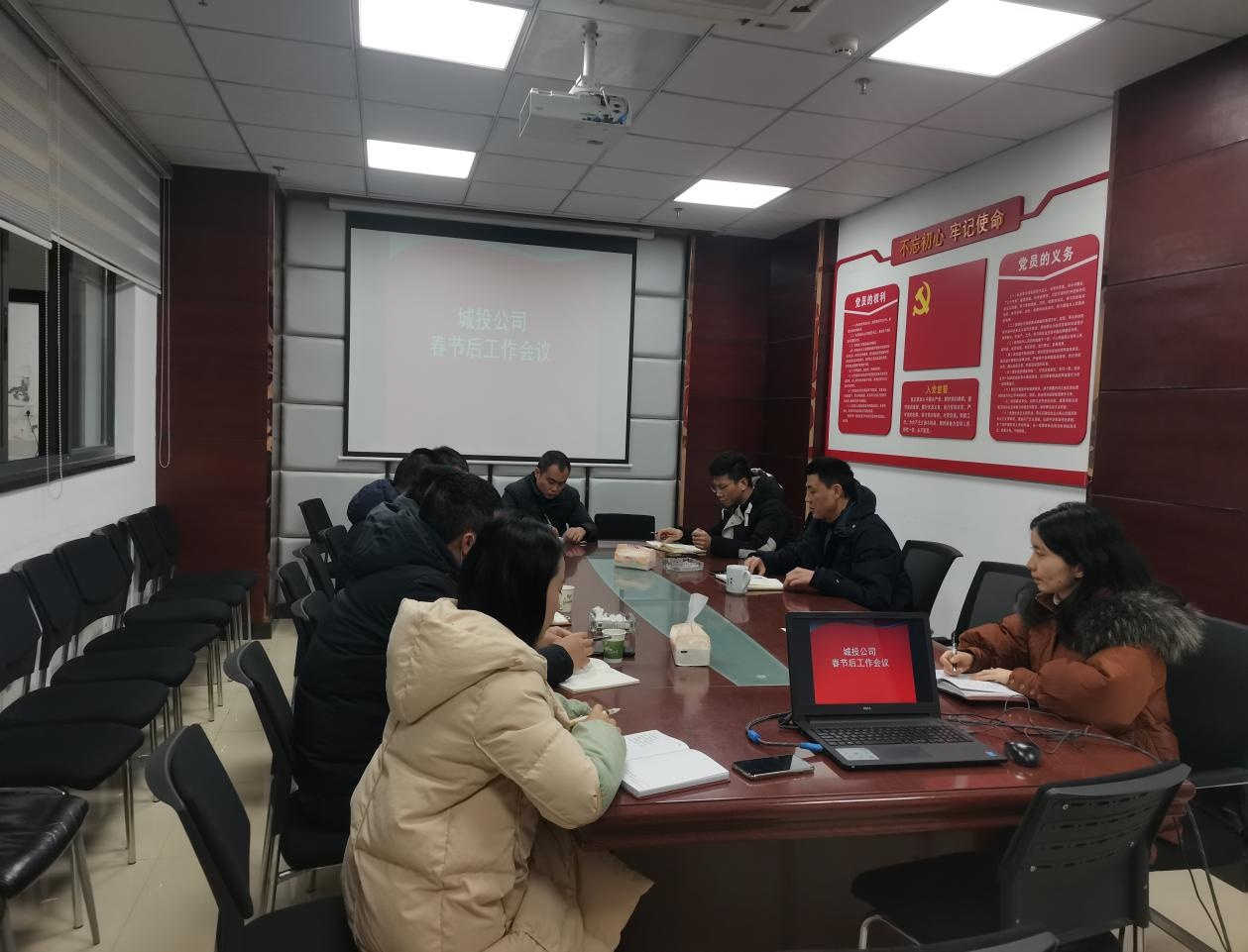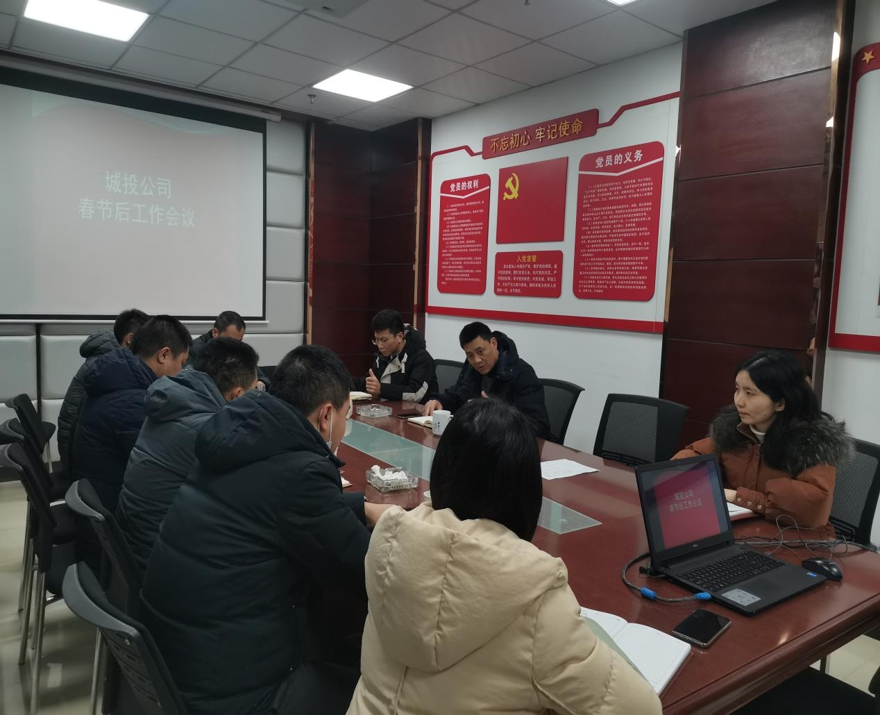 2022 年 2 月 7 日上午,城投公司組織召開 2022 年春節(jié) 后工作會議, 會議由董事長鞠志良主持, 公司中層以上 干部 及下屬子公司負(fù)責(zé)人參會。