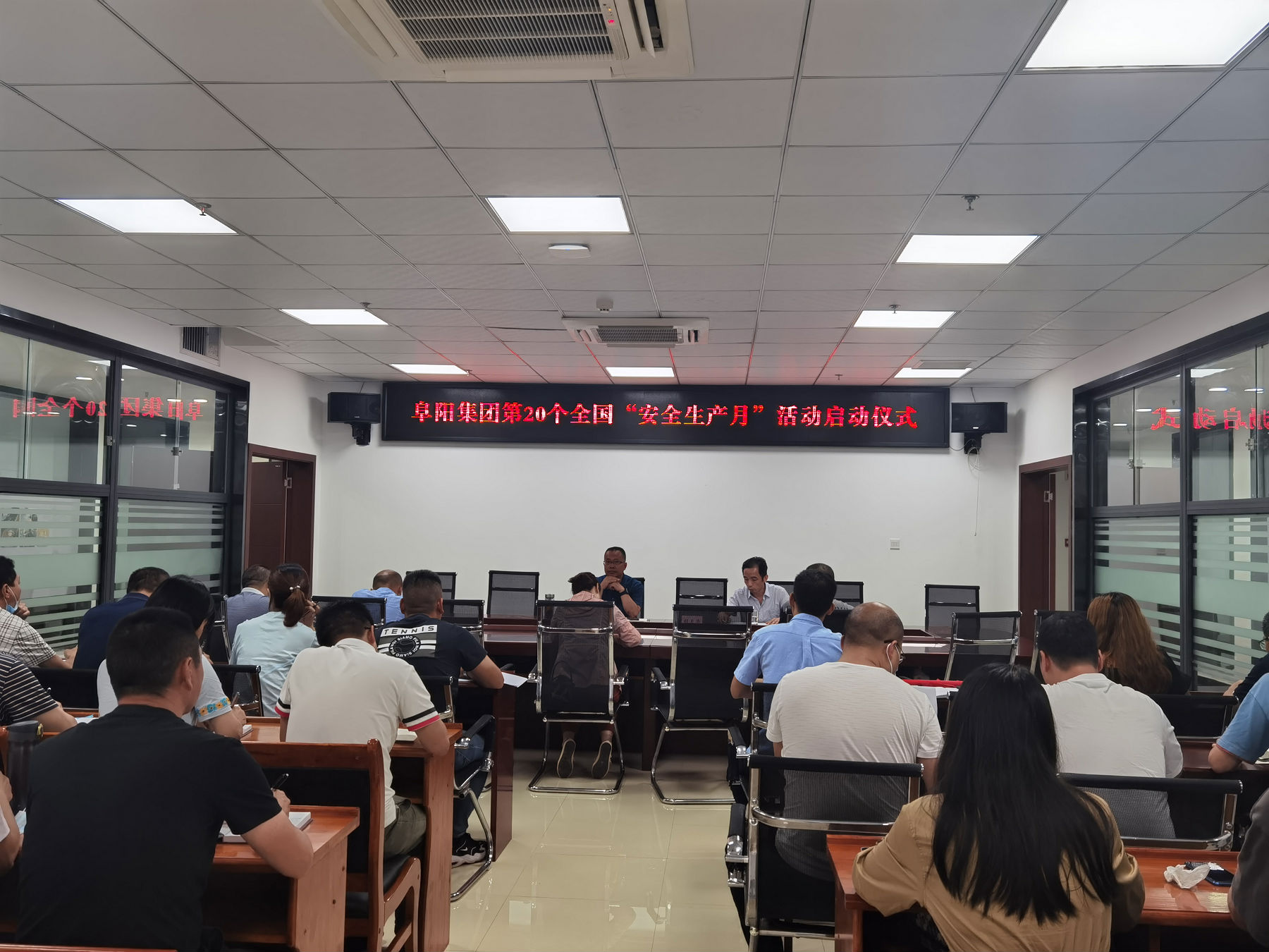 胡天華副總宣讀阜陽集團(tuán)關(guān)于開展2021年“安全生產(chǎn)月”活動(dòng)方案,并進(jìn)行安全宣誓。最后參會(huì)人員在安全條幅上簽名。