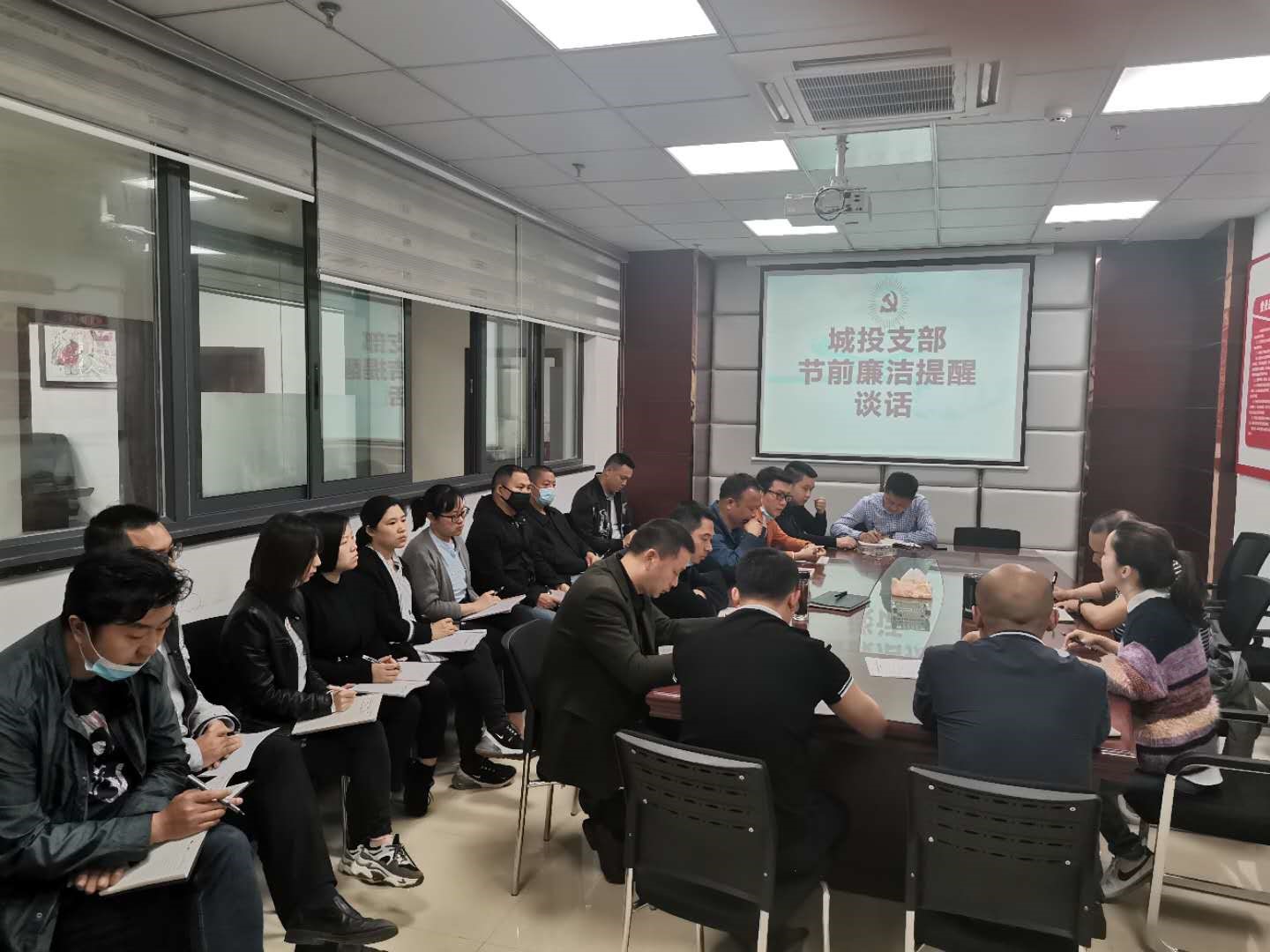 2020年4月27日上午,城投支部副書記譙棣升召集全體黨員、入黨積極分子開展《中華人民共和國國家安全法》專題學(xué)習(xí)暨節(jié)前廉潔提醒談話。會上,譙棣升從嚴于律己、以身作則、管好親屬等方面要求全體同志繼續(xù)樹立廉潔自律好風(fēng)氣,爭做模范黨員好先鋒。