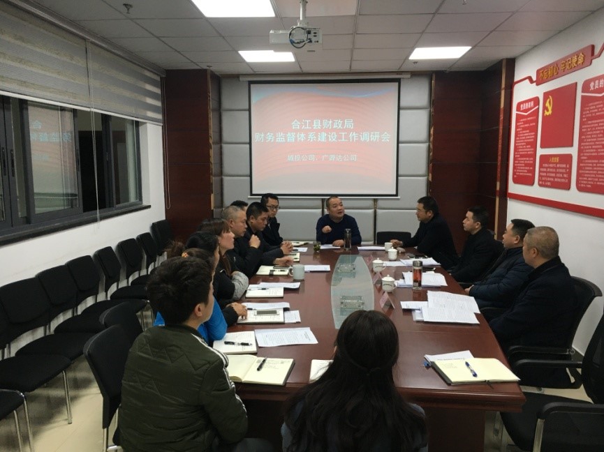 2019年11月21日,合江縣財(cái)政局黨組成員、財(cái)監(jiān)局局長(zhǎng)楊向前帶隊(duì)對(duì)城投公司、廣源達(dá)公司開(kāi)展財(cái)務(wù)監(jiān)督體系建設(shè)工作調(diào)研。公司主要領(lǐng)導(dǎo)、監(jiān)事會(huì)主席、各部門負(fù)責(zé)人、財(cái)務(wù)人員等參會(huì)。