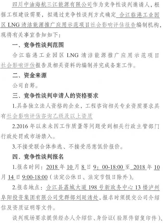 合江臨港工業(yè)園區(qū)LNG清潔能源推廣應(yīng)用示范項(xiàng)目社會(huì)影響評(píng)估單位競(jìng)爭(zhēng)性談判公告.docx