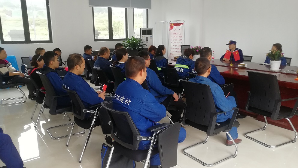 為加強(qiáng)消防知識(shí)培訓(xùn),提高安全意識(shí),檢驗(yàn)企業(yè)消防安全應(yīng)急預(yù)案和快速反應(yīng)機(jī)制,國瑞建材于2019年10月25日上午10時(shí),組織開展消防安全知識(shí)培訓(xùn)及演練活動(dòng)。合江縣消防救援大隊(duì)到現(xiàn)場(chǎng)培訓(xùn)和指導(dǎo)。