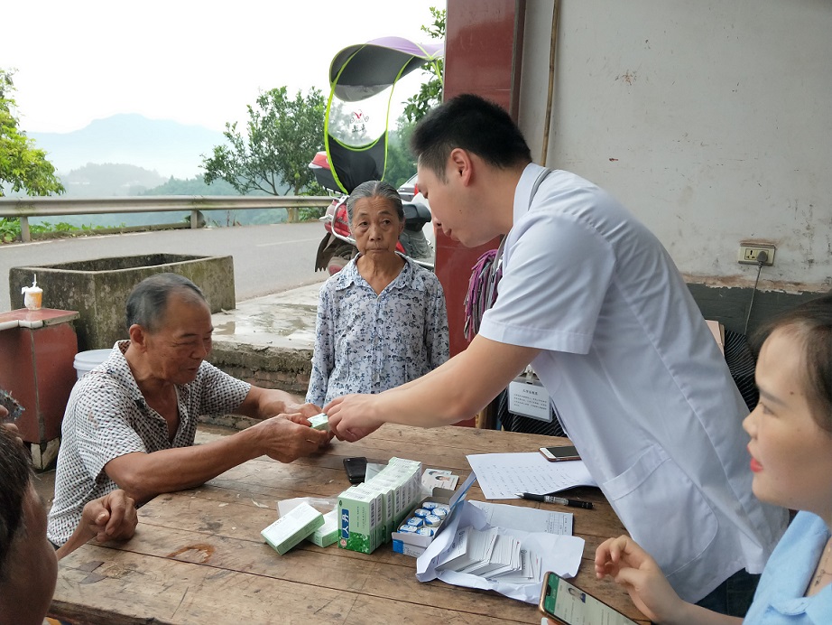 活動(dòng)中,家庭醫(yī)生團(tuán)隊(duì)成員為當(dāng)?shù)卮迕裰v解家庭醫(yī)生服務(wù)項(xiàng)目、醫(yī)改政策,并提供健康教育、用藥指導(dǎo)、咨詢服務(wù)等;洪昇公司為村民們發(fā)放價(jià)值3000余元的十滴水、清涼油、人丹等清涼解暑藥。