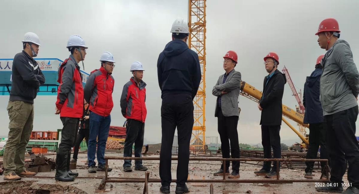 2022 年 4 月 1 日上午, 江北公司陳目科董事長帶隊視察 江北連接線、 江北文化綜合體項目、 學(xué)府家園等項目建設(shè)情況。