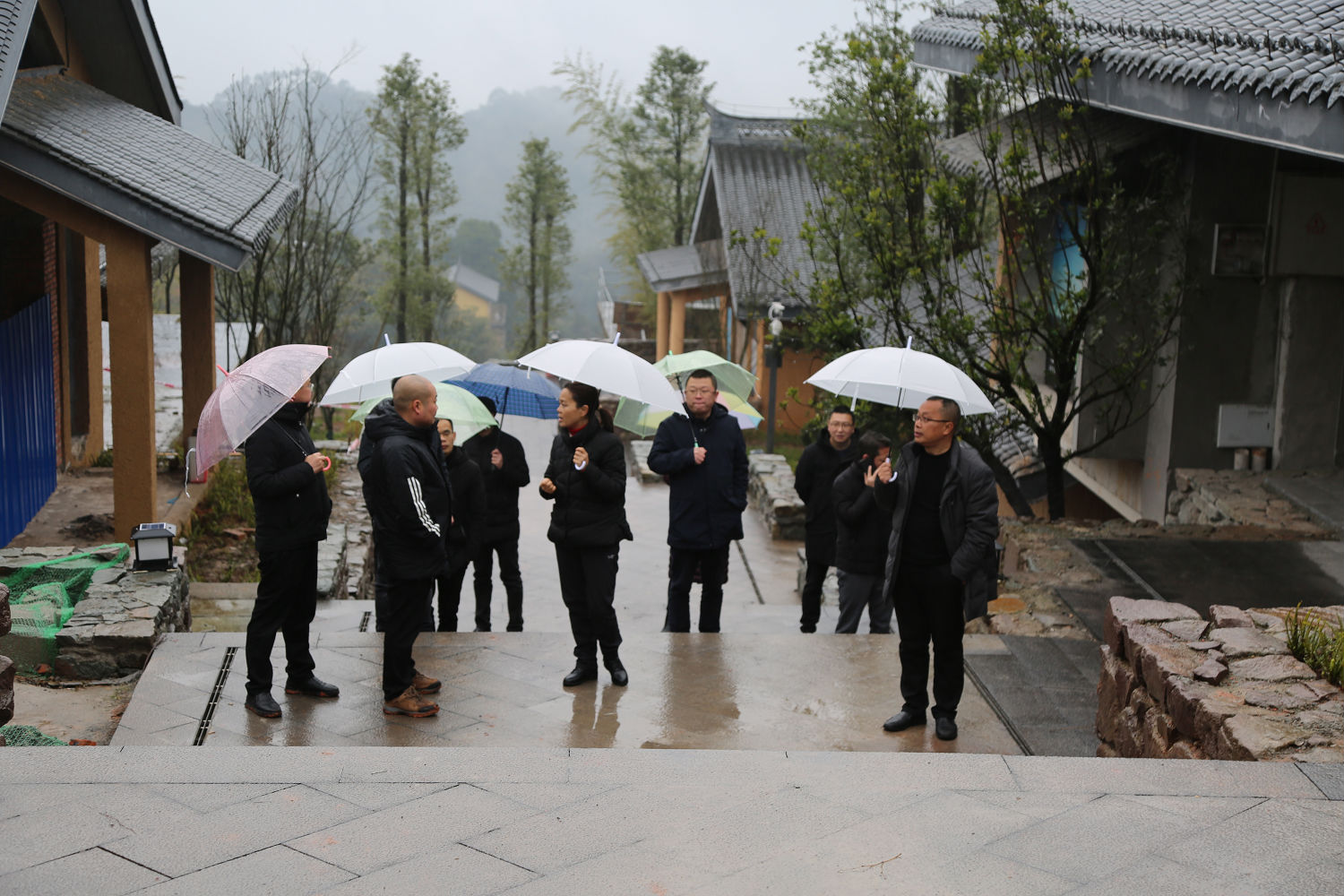 游啟君一行先到景區(qū)天街進(jìn)行現(xiàn)場勘查, 詳細(xì)了解了景 區(qū)工程進(jìn)度及預(yù)期運(yùn)營方向, 隨后在法王寺龍掛山景區(qū)—半 山云舍召開了座談會。 會上, 集團(tuán)公司領(lǐng)導(dǎo)對景區(qū)前期建設(shè)、 運(yùn)營工作給予了充分肯定, 并鼓勵文旅公司員工要繼續(xù)鉚足 干勁、整合力量來加快項(xiàng)目建設(shè),力爭早日全部投入運(yùn)營。